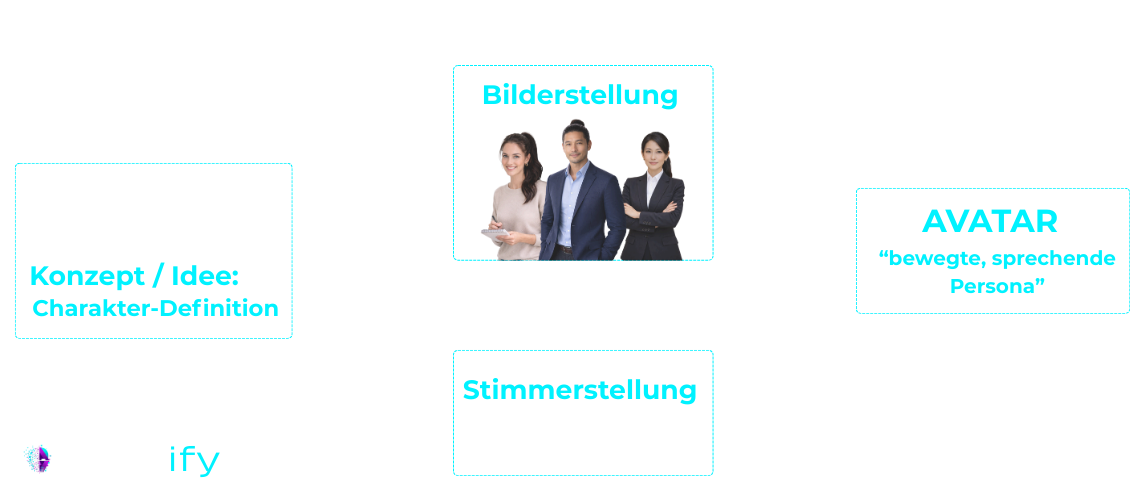 Darin enthalten ist der komplette Aufbau der Persona – von Konzept und Charakter-Definition über Bild- und Stimmenerstellung bis zur finalen, lebendigen Figur.